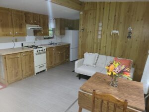 Fully renovated and move in ready! This spacious trailer features a private master bedroom, two kid rooms with bunk beds, new floors, ceilings and all new furniture. Enjoy outdoor living with a covered back porch and an amazing two-level deck, perfect for entertaining. Completely furnished and ready to go.