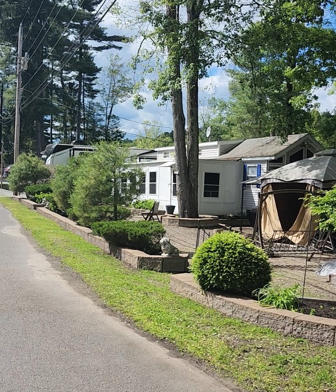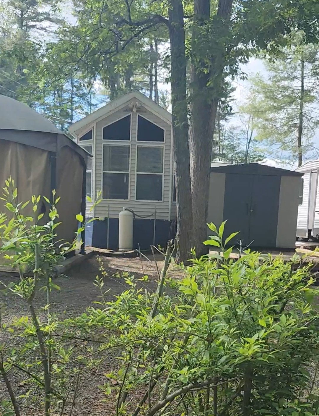 Meticulously cared for camper with enclosed porch, gazebos and shed. Sleeps 10. Fully furnished. New water heater, carpet on stairs and lofts, trimmed back trees, repaired and updated gazebos, washer and dryer, clear title. New furniture in camper. Prime location near all main amenities. Flat lot, great neighbors, plenty of parking.
